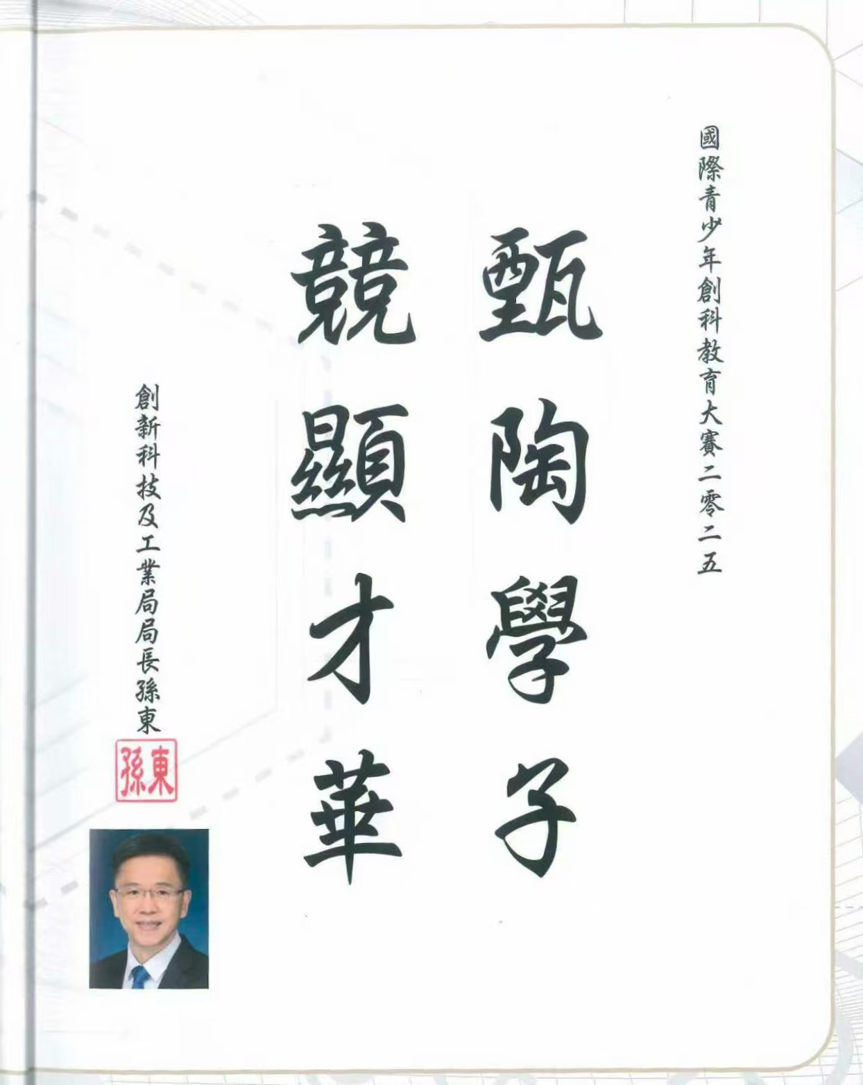 【1】香港财政司长:陈茂波题字 【2】香港科工局局长:孙东题字