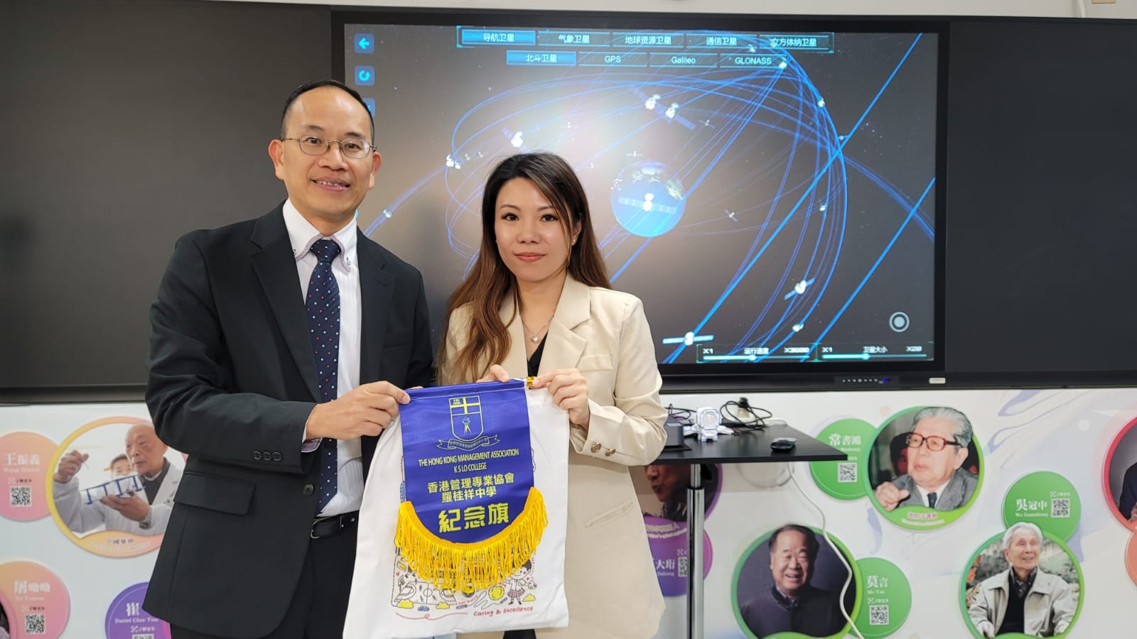 星链航天控股(深圳)有限公司 香港区总经理陈颖萍(右)与香港管理专业协会罗桂祥中学校长梁国基(左)合影
